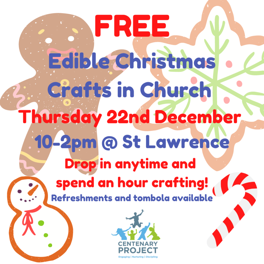 From gingerbread to mince pies – Christmas food is just the best. So pop down to church the Thursday before Christmas to make some fun edible crafts. A great way to keep the children occupied in the week off before the big day.