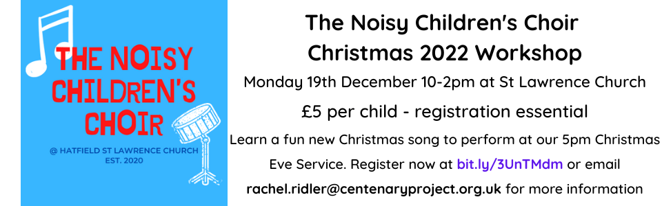 Would your child like the opportunity to learn some fun new Christmas songs to perform at our Christmas Eve 5pm Service? If so, book them on to our Noisy Children’s Choir Workshop Day (and enjoy a child-free day of Christmas shopping!). Places are £5 per child to cover snacks and activities. Places are limited so book early. BOOK HERE.